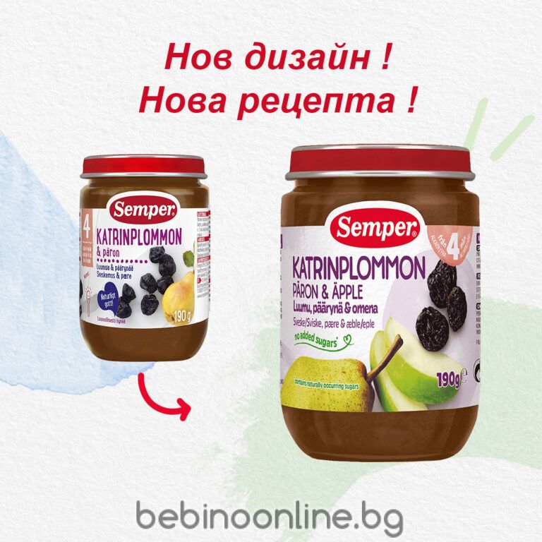 Начало ХРАНЕНЕ SEMPER Бебешко плодово пюре Сини сливи и Круши 4+ мес. 190 гр. 9536