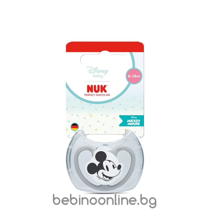 Начало АКСЕСОАРИ NUK PM Залъгалка силикон + кутийка 6-18 м 1 бр. AIR МИКИ СИВА 176.362