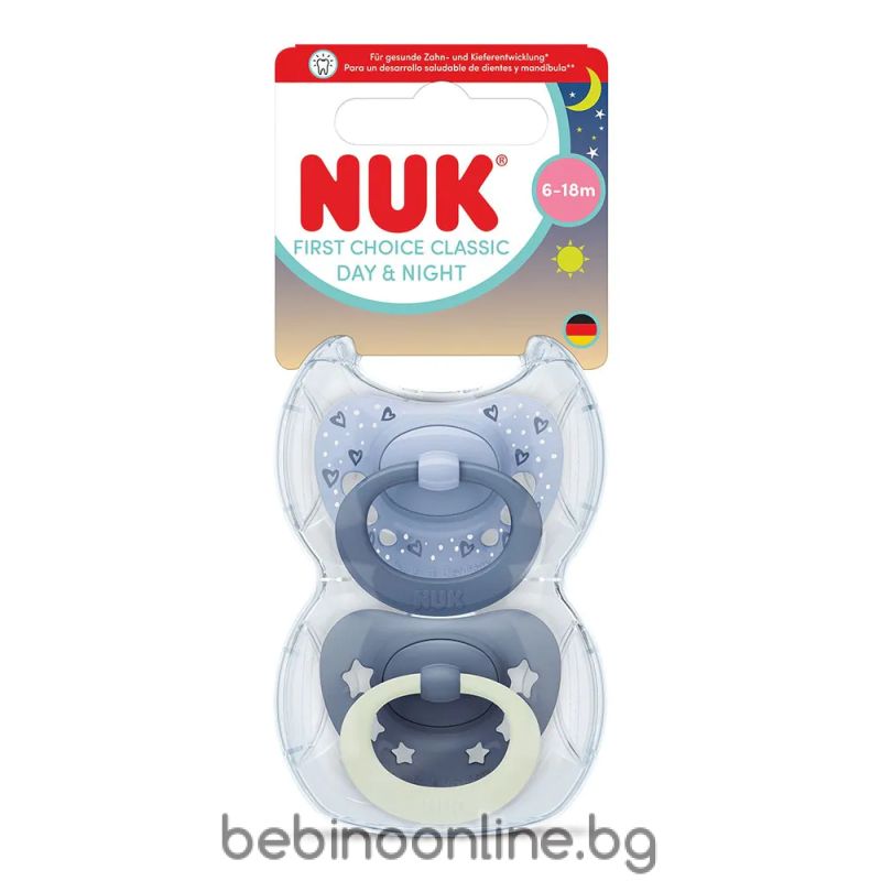 NUK FC Залъгалка силикон + кутийка 6-18 м 2 бр. DAY&NIGHT МОМЧЕ 176383