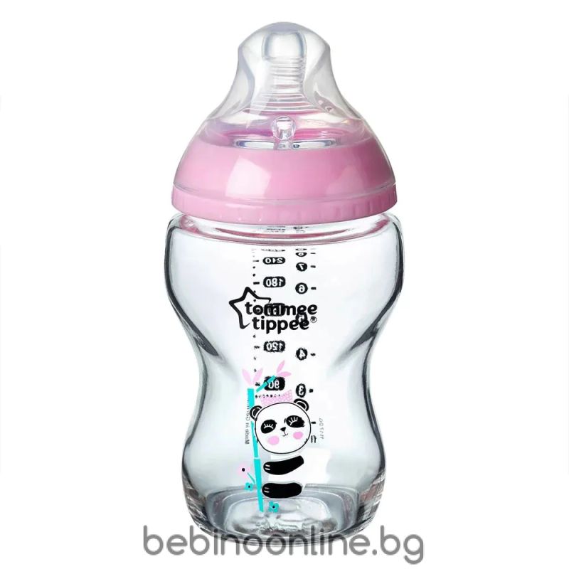 Tommee Tippee Easi Vent Стъклено шише за хранене  250мл, 0м+, момиче  0200