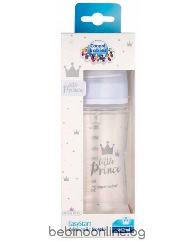 CANPOL Шише с широко гърло 240 мл. АНТИКОЛИК EASY START ROYAL BABY СИНЬО 35/234