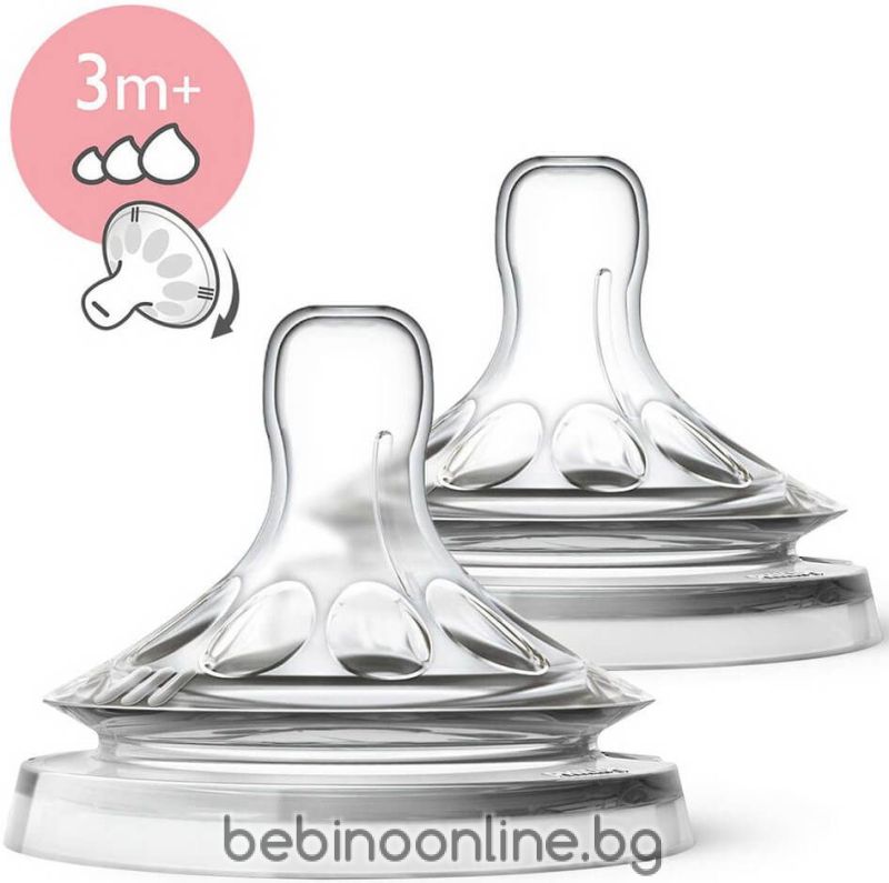 Philips AVENT Natural Биберони за хранене с три позиции за бебета над 3 месеца ЕСТЕСТВЕНИЯТ НАЧИН ЗА ХРАНЕНЕ С ШИШЕ ВГРАДЕНА ИНОВАТИВНА ДВОЙНА АНТИ-КОЛИК КЛАПА Бибероните Philips AVENT Natural са изработени от мек, чист медицински силикон и със своите венчелистчета имитират гърдата по форма и функция. Опаковките на Бибероните AVENT имат цветови код, който помага на майките да откриват лесно правилния размер биберон. С помоща на бибероните с три позиции може да променяте силата на струите според нуждите на бебето, чрез завъртане на шишето. Номерът на биберона, означава съответната сила и се поставя към нослето на бебето. Използва се с Шише за хранене Philips AVENT Natural или PP от класическата серия, както и с VIA.