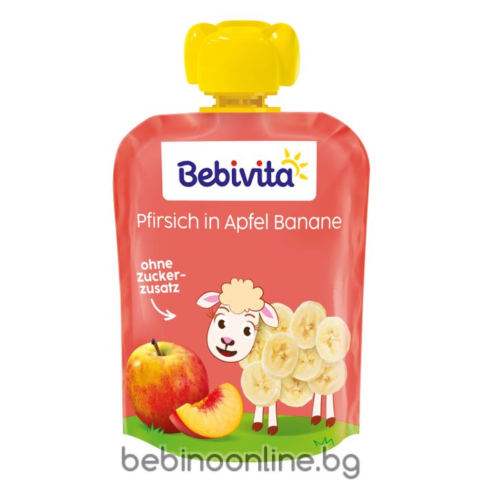 BEBIVITA плодова закуска ПАУЧ ябълка с банан и праскова 12М+ 90 г.19060
