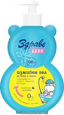 Описание :Душ-гел създаден за да направи за мека и лесна за разресване бебешката коса Съдържащият Д-пантенол хидратира и успокоява кожата ,а екстракта от лайка и смрадлика я прави нежна и мека.Измивният гел Здраве Бебе за почистване на коса и тяло е със специална формула без сапун. Той почиства и предпазва кожата от изсушаване като образува кремообразна пяна с лек и деликатен аромат на момина сълза. Не дразни очите. Удобен за използване с една ръка благодарение на помпата, която доставя необходимото количество от продукта. Подходящ за употреба от новородени, бебета и деца.