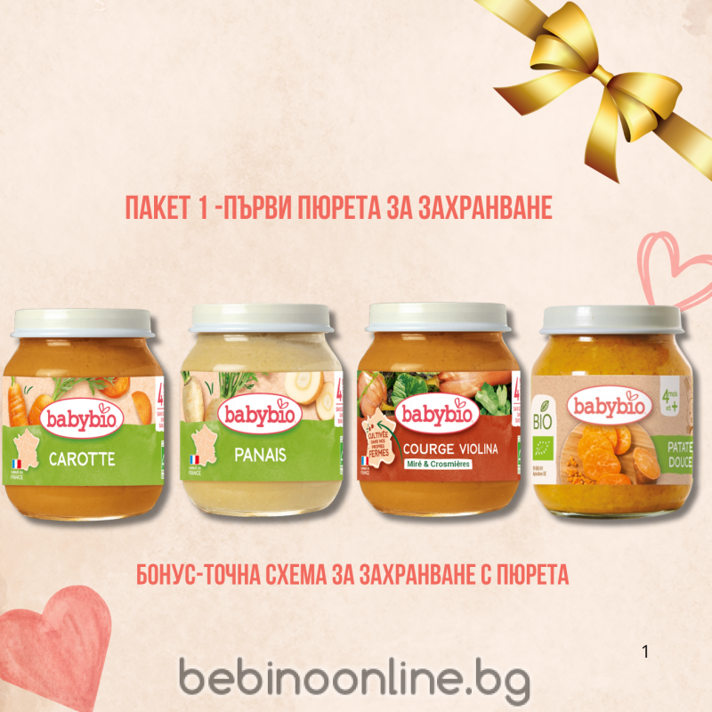 Начало ХРАНЕНЕ КОМПЛЕКТ 1 -ПЪРВИ ПЮРЕТА ЗА ЗАХРАНВАНЕ/BABY BIO/