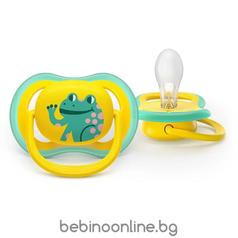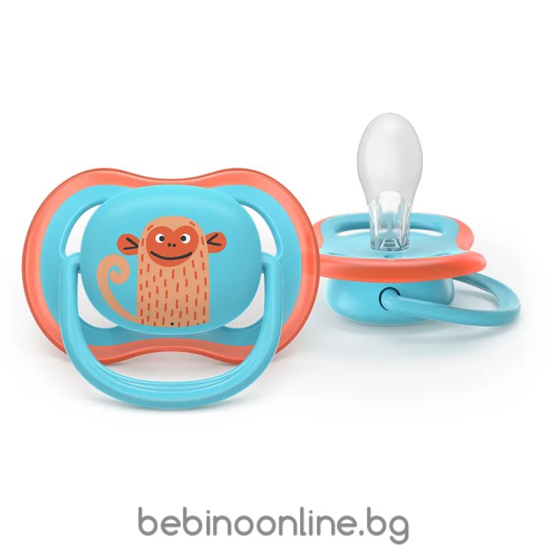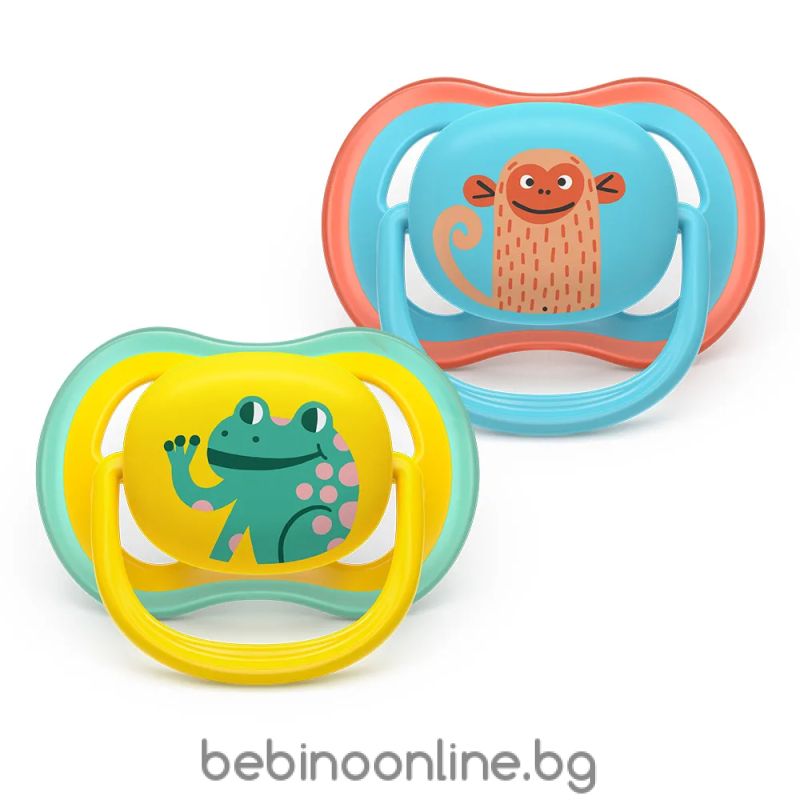 AVENT Ultra Air Happy залъгалки ортодонтски,18м+, с дизайн маймунка/жаба , в кутия за стерилизиране 0653.001