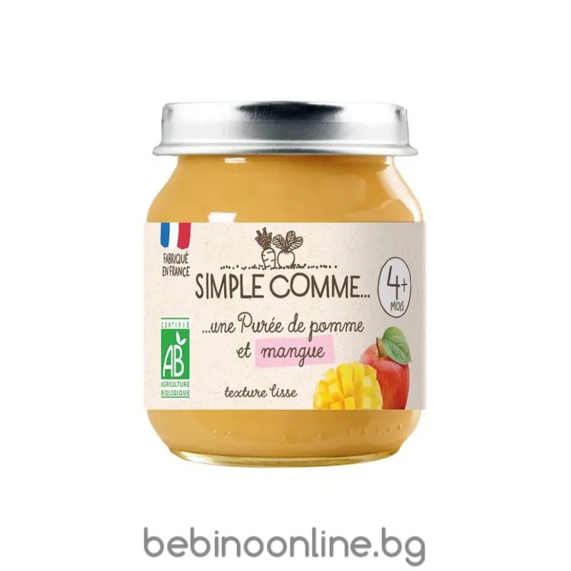 SIMPLE COMME Био бебешко плодово пюре Ябълка и Манго (4+ месеца) - 125г