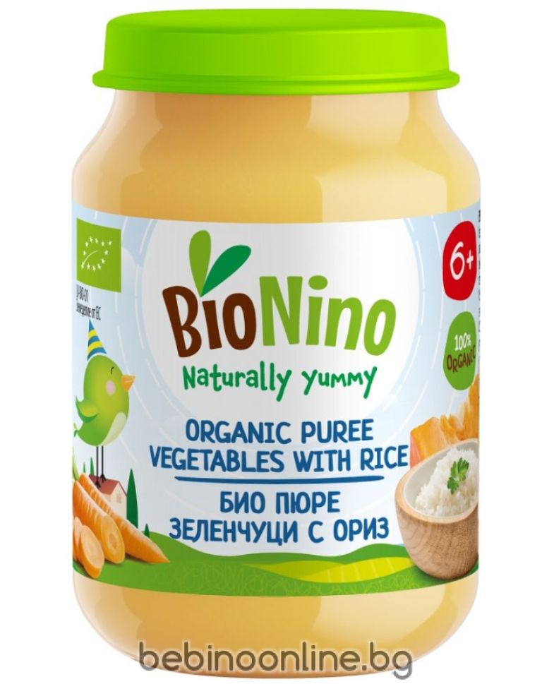 BIO NINO  Био бебешко пюре  Ориз със зеленчуци, 6 м+, 190 g. 2843